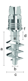| Product Code | Length (mm) a | Min. sharf diameter (mm) b | Max. shaft diameter (mm) c | Neck height (mm) d | Neck Width (mm) e | Abutment Width (mm) f |